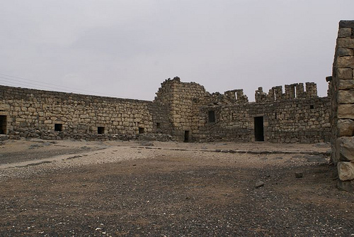 3 – Qsar Azraq é o terceiro castelo que vamos visitar e fica em um antigo oásis. Hoje ao entrarmos em Azraq já não temos a sensação de entrar num oásis. O deserto estende-se por toda a povoação e já são poucas as palmeiras. O castelo, no entanto, encontra-se razoavelmente bem preservado e deve a sua fama ao fato do oficial inglês T.E. Lawrence, mais conhecido como Lawrence da Arábia ter pernoitado lá durante sua luta ao lado dos beduínos árabes contra os turcos.