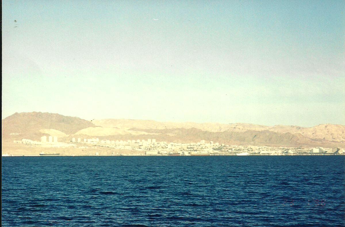 A cidade de Eilat é um balneário bem mais chique que o de Aqaba, que é a única praia frequentada da Jordânia; ao lado, no golfo de Golfo de Aqaba, está o Mar Vermelho, chama-se vermelho por causa do coral que existe no mar.