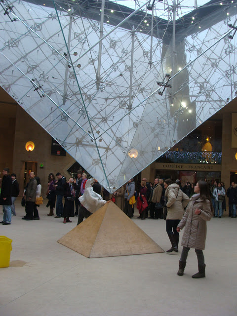Dica: procure uma escada que dá acesso ao subsolo do Louvre, lá encontramos várias máquinas que emitem o ticket de entrada com cartão de crédito, em 10 minutos já estávamos dentro do Louvre.