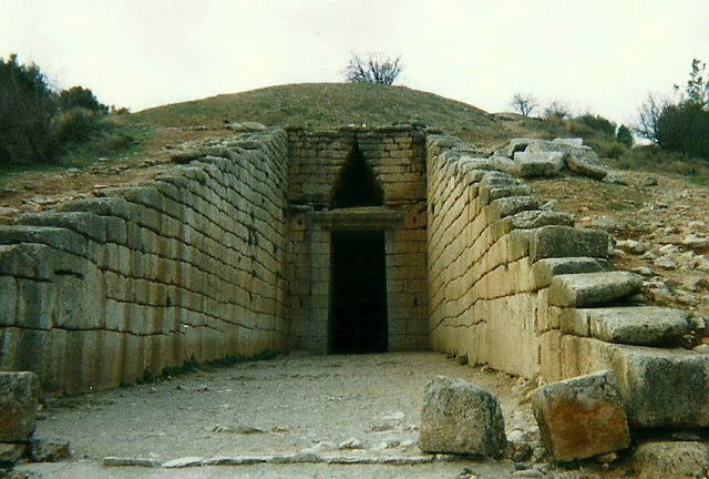 O túmulo de Atreu foi construído no século XIII a.C., é constituído por uma falsa cúpula de 14,6 m de diâmetro. A entrada se dá por uma estrutura em falsa abóboda cujo formato é encontrado em algumas estruturas do Egito antigo. Nenhum outro edifício de Micenas possui um acabamento tão refinado com um corte tão preciso dos blocos de rocha.