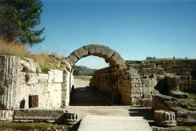 No dia seguinte de manhã fomos para o sítio arqueológico que é onde os Jogos Olímpicos tiveram início. É no alto, tem um estádio enorme, comemos no quiosque e seguimos para a cidade Náuplia. Atravessamos o Peloponeso no meio, estrada muito perigosa, estreitíssima, no meio das montanhas. Paramos em Lacadia, um vilarejo no meio da montanha e nos deliciamos com doces gregos. Continuamos até Trípoli e depois Náuplia. Lá ficamos no Hotel Olimpia, o mais bonito dos três, enorme e fora da cidade uns 2 kms. Jantamos no restaurante Porto.