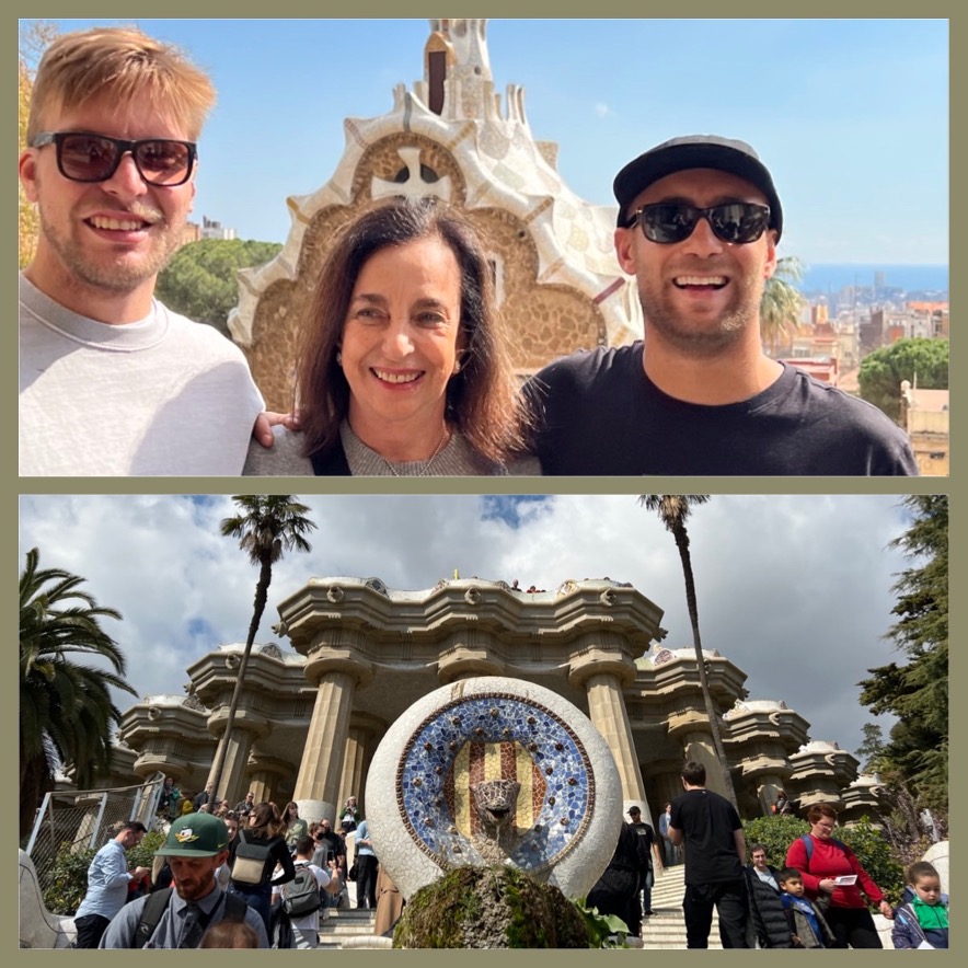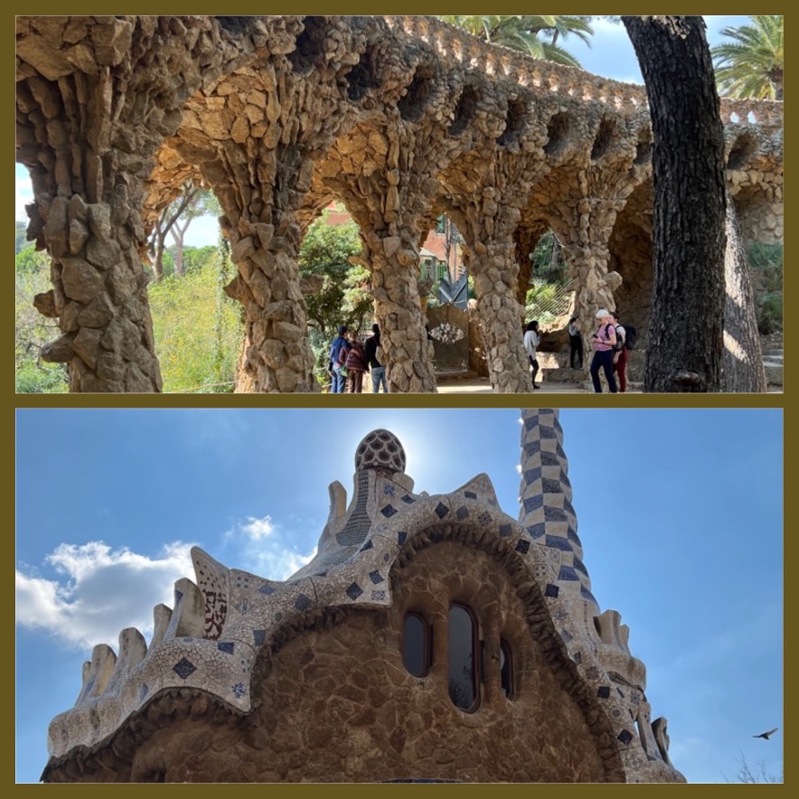 Fomos visitar o Parq Güell, uma das grandes obras de Gaudi, Patrimônio da UNESCO, muito bonito, duas horas de visita subindo e descendo escadas. O parque deve o seu nome a Eusebi Güell, conde de Güell, um rico empresário catalão membro de uma influente família burguesa de Barcelona, que foi quem idealizou construir uma urbanização de luxo na encosta de um monte nas imediações da cidade de Barcelona, então conhecido como Montanha Pelada. O parque foi concebido por Güell e Gaudí como um conjunto estruturado onde, dentro de um incomparável quadro de beleza natural, se situariam habitações de luxo, com todos os progressos tecnológicos da época e acabamentos de grande qualidade artística.