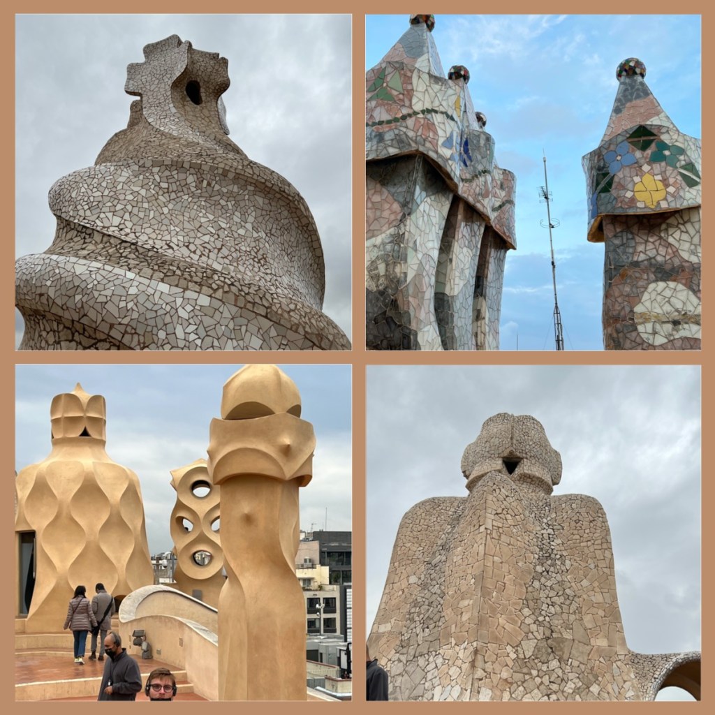 Fizemos um tour na Casa Pedrera, com auxílio importante do guia de fone. Foram mais de meses de reparos para que o Patio de las Mariposas pudesse ser novamente aberto ao público na Casa Milá, ou La Pedrera, uma das mais tradicionais construções de Barcelona, também assinada por Gaudí, há mais de um século, que ocupa todo um quarteirão no tradicional Paseo de Gràcia.