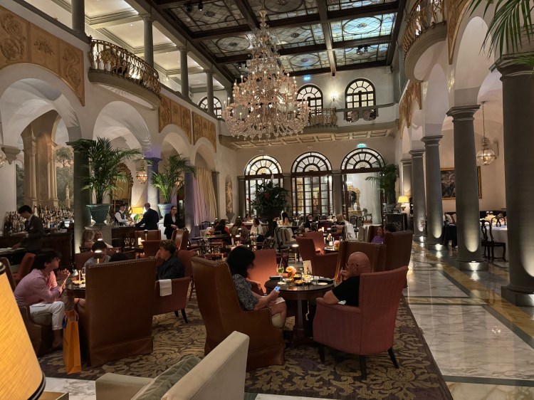 O hotel St. Regis, também 5 estrelas, fica em frente ao Hotel Westin em um prédio histórico projetado por Brunelleschi e pertence a mesma cadeia, Marriot, muito bom!! Jantamos no restaurante do hotel St Regis, Winter Garden Restaurant, muito bonito, frequência chique e comida ótima!!