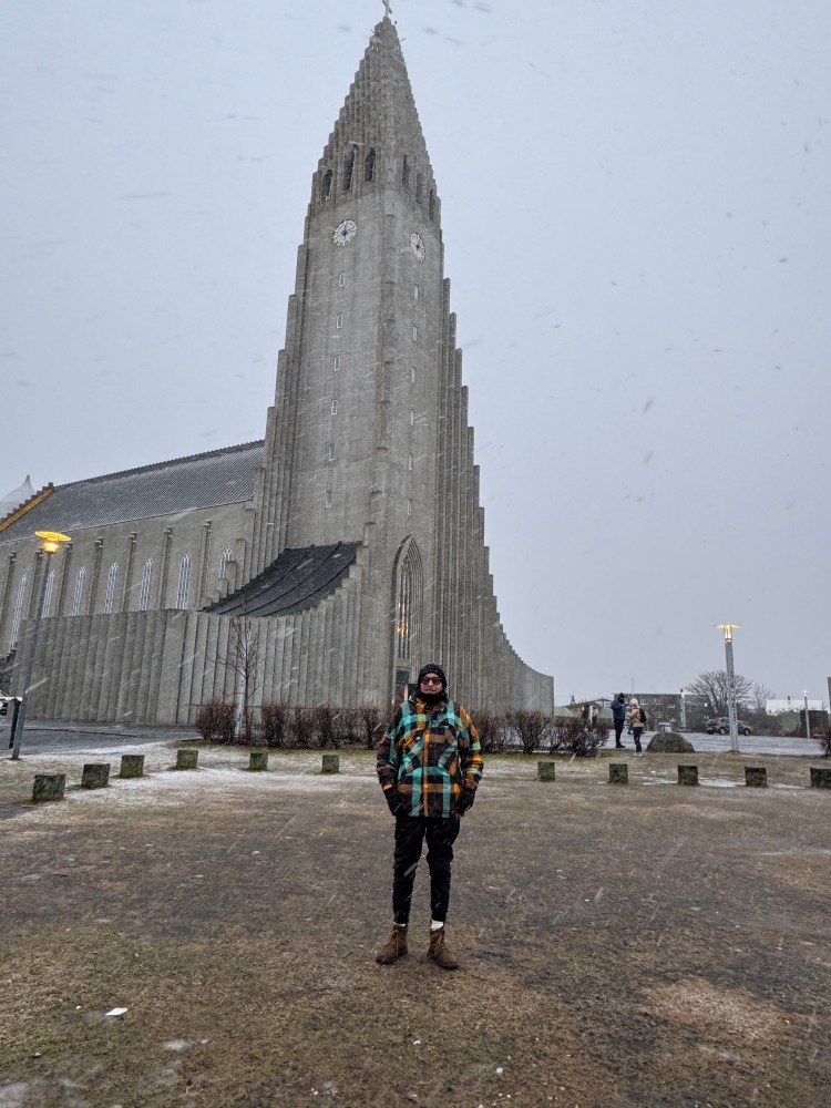 Fomos visitar a majestosa igreja luterana Hallgrímskirkja, ícone da cidade e primeira obra pública pós-independência (1944). Hoje 80% da Islândia é protestante. Foi inaugurada em 1986. O seu desenho foi projetado para simbolizar montanhas e glaciares crescendo pelas colunas hexagonais de basalto. Em suas partes mais altas, acima do seu campanário, oferece vistas esplêndidas da cidade.