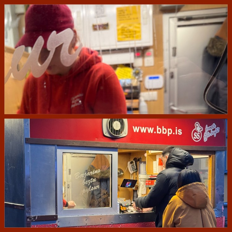 No volta para o hotel paramos para comer o famoso hot-dog islandês – é o tradicional de Reykjavik, numa barraquinha na rua, realmente é ótimo! A salsicha é de cordeiro e tem três molhos e dois acompanhamentos.
