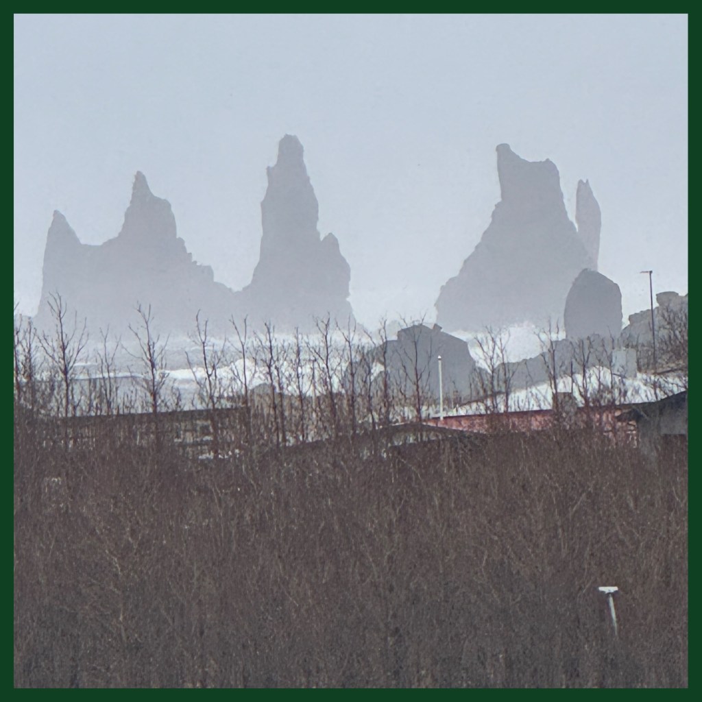 Ao lado de Vik existe uma praia chamada Reynisfjara muito famosa pela suas areias negras e violência das suas ondas, podendo chegar até 40 mts de altura!! Ao fundo, para completar a paisagem, dois rochedos emergem do Oceano Atlântico, empinados, contrastando com a espuma provocada pelas ondas do mar.