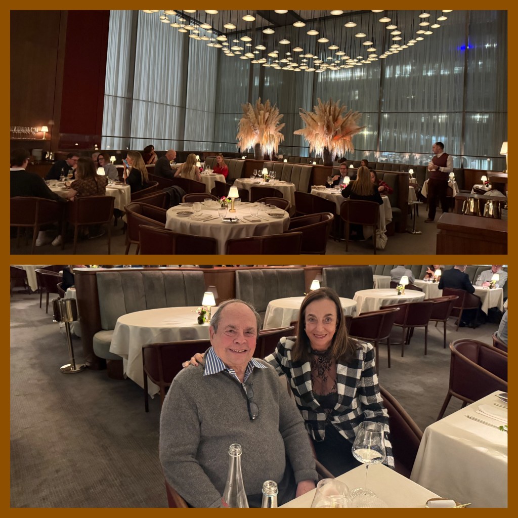 Jantamos no restaurante novo do Chef Jean-Georges, o Four Twenty Five – muito bom, chique, com um público excelente. Situado no prestigiado endereço 425 Park Avenue, em uma torre de escritórios da L&L Holding, o Four Twenty Five apresenta um projeto notável do estimado arquiteto Lord Norman Foster.