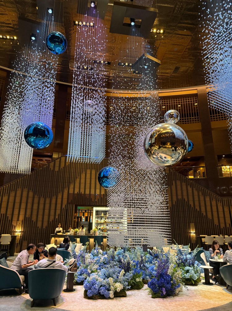 Nos hospedamos no Park Hyatt, um hotel de padrão impecável, cuja recepção fica no 30º andar. A vista do quarto era deslumbrante — de um lado, o porto e a ponte; de outro, a imensidão de prédios modernos que formam o horizonte da cidade.