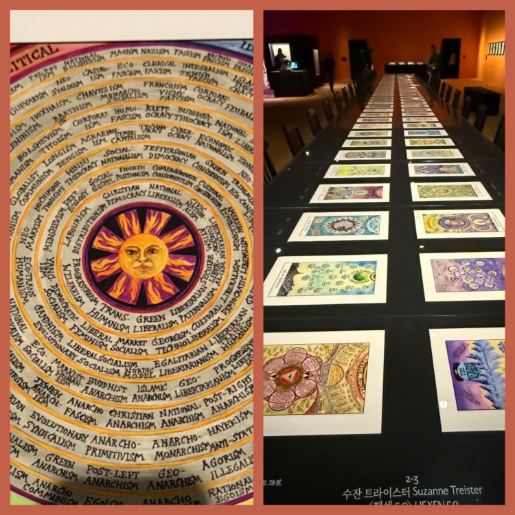 Uma bela exposição, que unia cabala, simbolismos espirituais e linguagens imersivas: tapetes coloridos e salas envolventes exibiam vídeos, luzes e instalações que refletiam a convergência entre tradição e inovação.