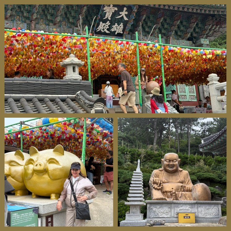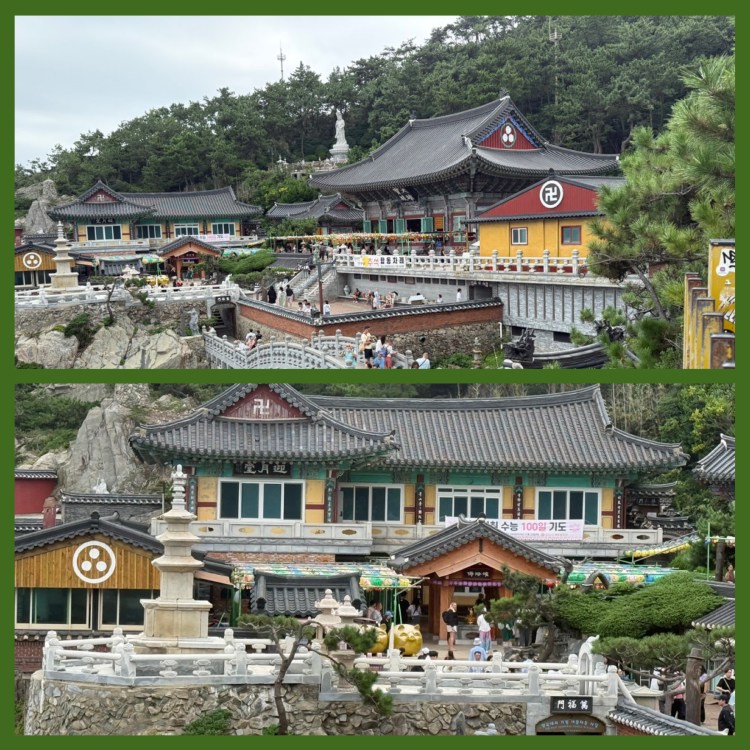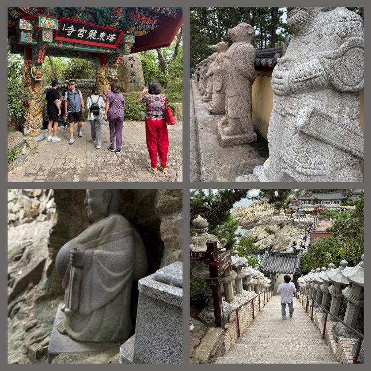 Fomos visitar o templo Haedong Yonggungsa, localizado à beira-mar. É um dos templos mais belos da Coreia, com inúmeras estátuas de Budhas e esculturas representando os signos do zodíaco. A atmosfera era serena e o cenário, impressionante.