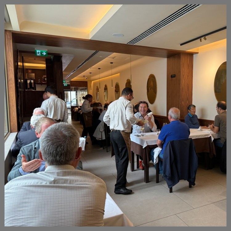 Almoçamos no Clube Turf, extremamente exclusivo, a comida foi muito boa, servida à francesa, com garçons de luvas sendo que o local permanece como um dos últimos redutos da antiga sociabilidade lisboeta. Fundado no final do século XIX e instalado no coração do Chiado, ele guarda a atmosfera dos clubes ligados ao hipismo e às tradições aristocráticas, preservando salões silenciosos, mobiliário histórico e um ritual social que atravessou monarquia, República e modernização da cidade.