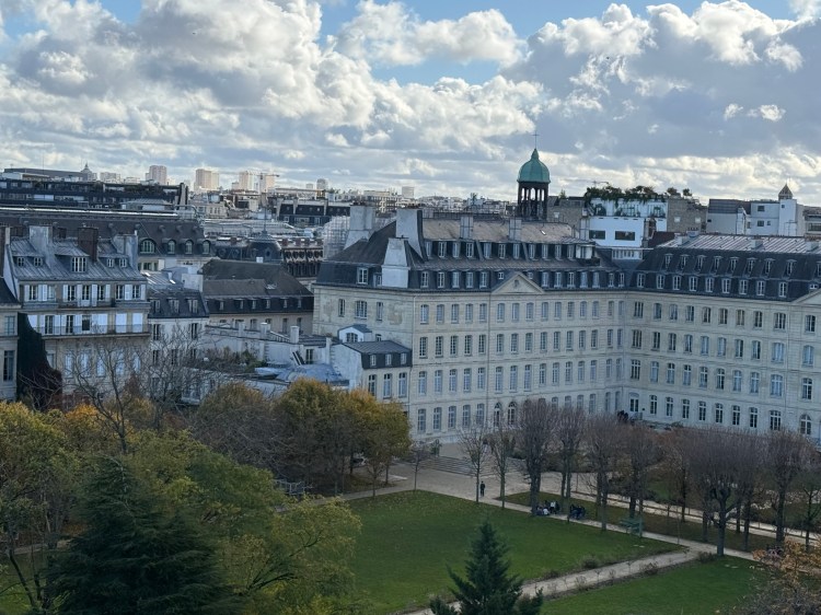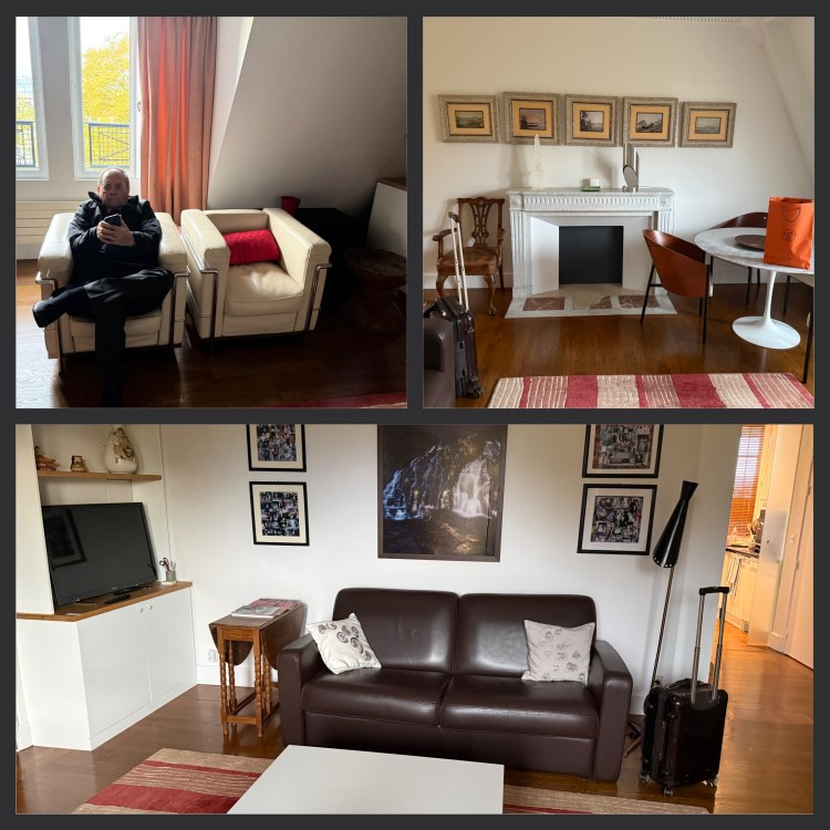 Saímos de Lisboa e chegamos a Paris em um voo tranquilo, com duração de cerca de duas horas e meia. Alugamos um apartamento do Charlô, muito confortável, com uma vista ampla e desimpedida para os jardins do Palais Matignon.