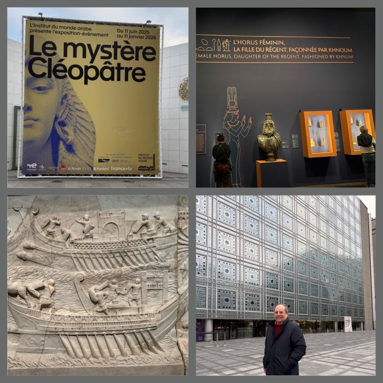 Visitamos o Institut du Monde Arabe e vimos uma exposição dedicada a Cleópatra, mostra visualmente muito bonita, com filmes e recursos audiovisuais especialmente interessantes.